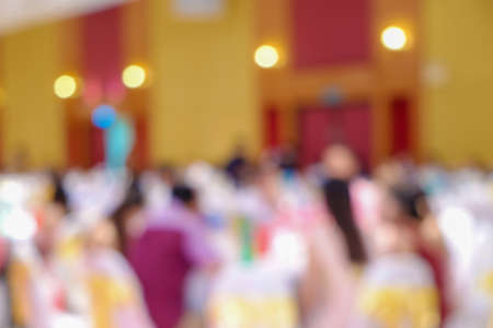 Abstract blurred people in wedding ceremony dinner ballroom people background