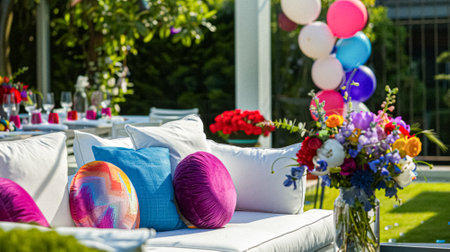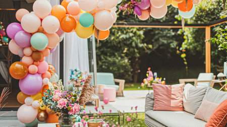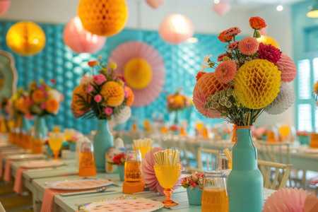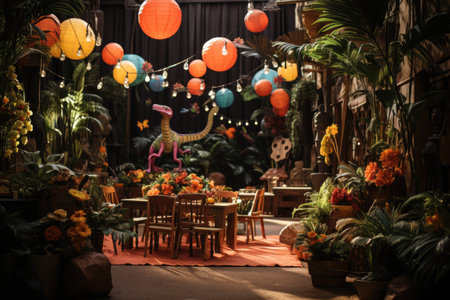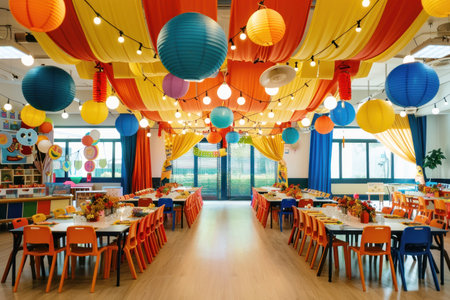 Vibrant birthday venue adorned with colorful decorations, inviting and festive ambiance.