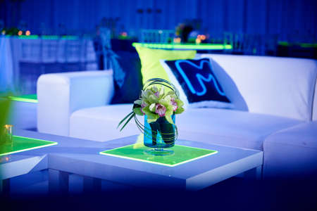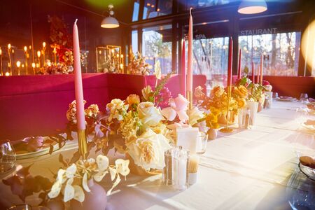 Decorated Table for a wedding reception in a restaurant .Wedding decor.
