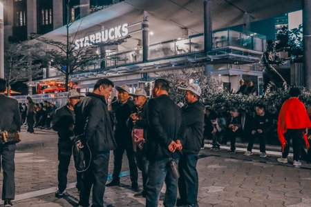 Intimate photo of a group of people lost in the crowds of the city. Generative AI