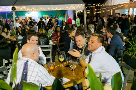 Johannesburg, South Africa - October 12 2017: Diverse Friends eating, drinking and generally enjoying a day out at a Food and Wine Fair