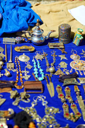 Silver jewelry for sale on a street in Medina of Chefchaouen, Morocco