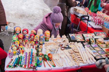 PERM, RUSSIA - March 13, 2016: Sales of gifts and souvenirs in celebration of Maslenitsa