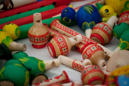Peruvian background. Peruvian souvenirs. Peruvian market .Place for text. Selective focus