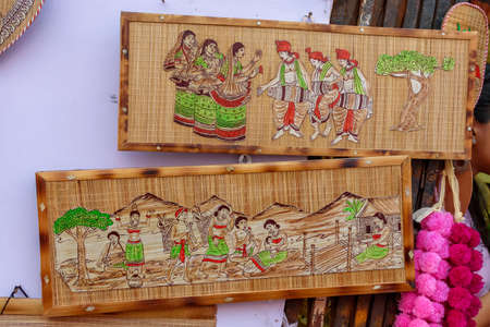 Colourful handicrafts are being prepared for sale in Kolkata by Indian rural worker. Handicrafts are rural Industry in West Bengal.