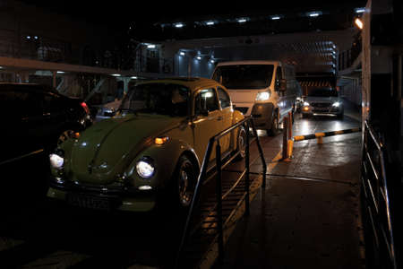 Istanbul, Turkey; May 25th 2013: Cars disembarking from a ferry.