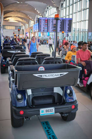 Istanbul / Turkey - September 14, 2019: Istanbul airport iGA Buggy service electric vehicle (Mini Golf Vehicle), part of “iGA PASS†exclusive services membership program offered to passengers