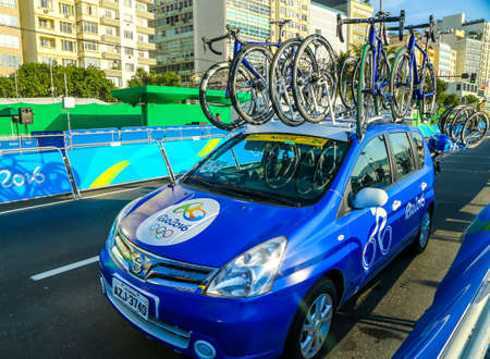 RIO DE JANEIRO, BRAZIL - AUGUST 6, 2016: The technical support car during Rio 2016 Olympic Cycling Road competition of the Rio 2016 Olympic Games in Rio de Janeiro