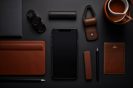 Sleek Office Aesthetics: A Glimpse of a Modern Workspace with Mobile and Stationery