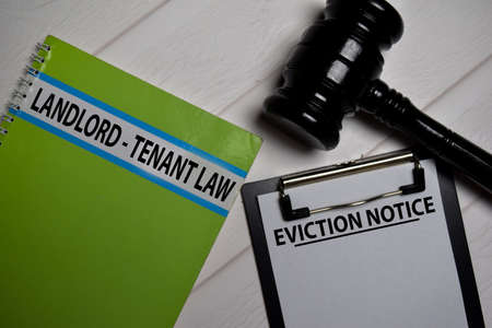 Eviction Notice text on Document form and book Landlord-Tenant Law isolated on office desk.