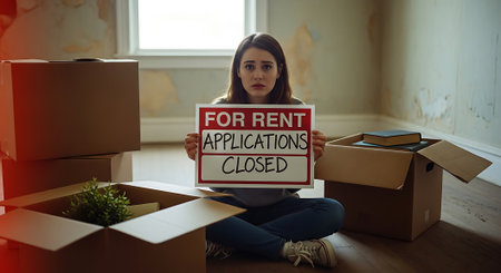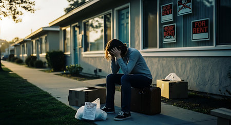 woman is stressed due to imminent seizure of assets, debts, financial problems, loans, guarantees document with the text eviction notice, debt, property, loan, agent, bankruptcy