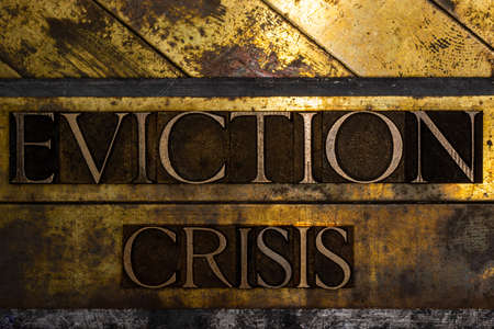 Eviction Crisis text message on textured grunge copper and vintage gold background