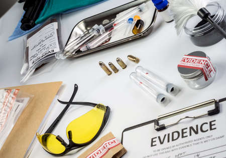 some forensic evidence of murder at Laboratory forensic equipment, conceptual image