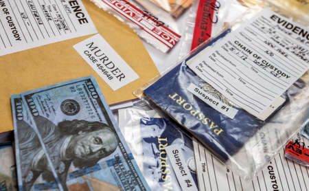 Evidence bag, Police scientific laboratory, conceptual image, vertical composition