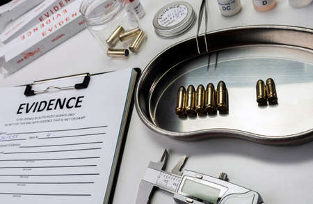 Criminalistic Laboratory, Bullet shell analysis, rule of ballistic measurement, conceptual image