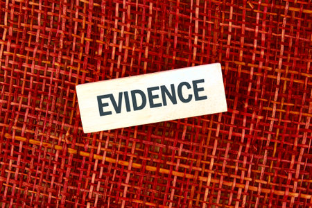 Criminal investigation and investigation Fingerprint. Evidence in criminal investigations. The conceptual phrase EVIDENCE on wooden blocks, conceptual phrase, text