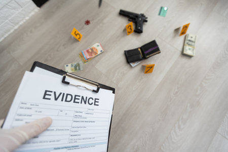 An expert is gathering evidence at a crime scene. The law and the concept of police forensics