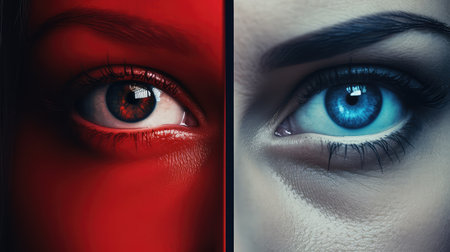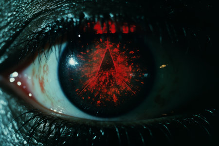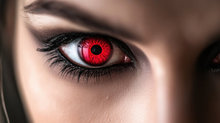 A close up of a womans eye with red glowing eyes, AI