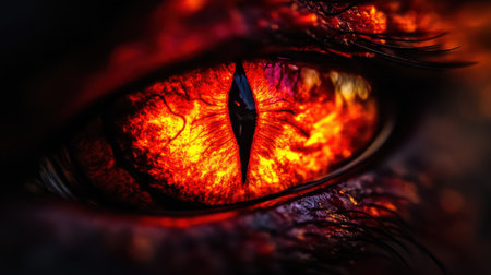 This mesmerizing close-up captures the fiery essence of a dragon's eye, showcasing vibrant colors and intricate details that evoke fantasy and power.