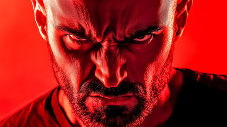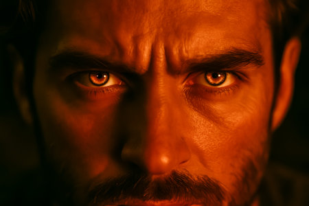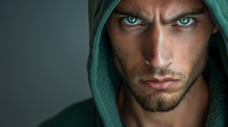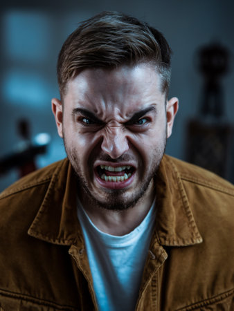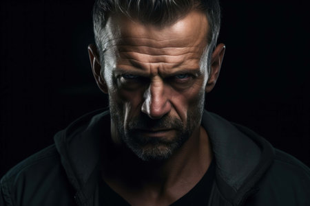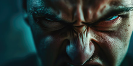 menacing stern angry man portrait close