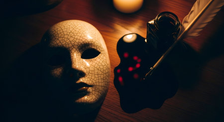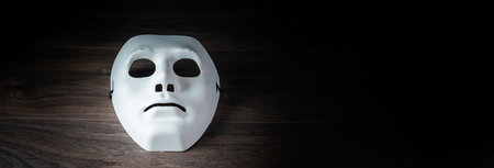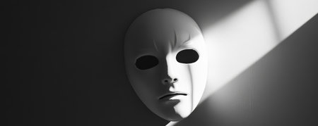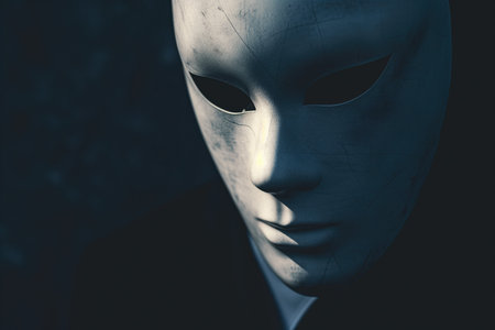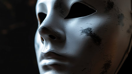 White theatrical mask in dramatic lighting