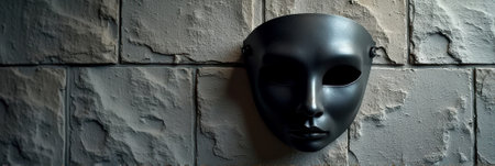 Black theatrical mask on beige fabric