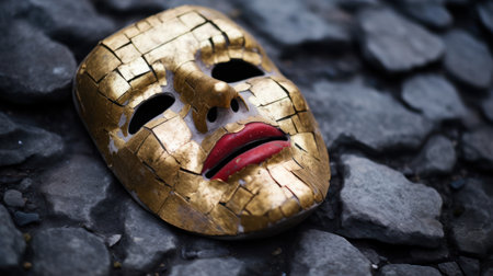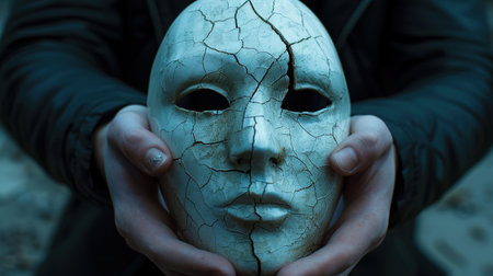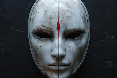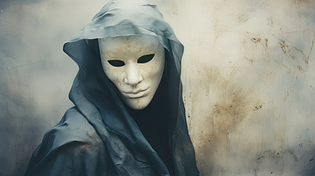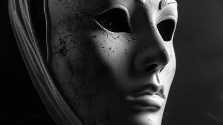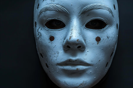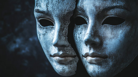 symbolic portrait of a woman wearing a mask, symbolizing the duality of human nature and the complexity of emotions