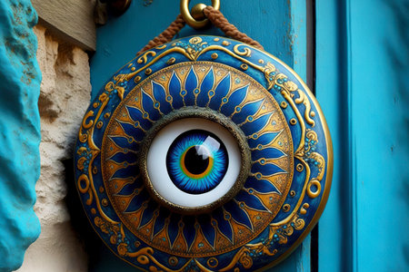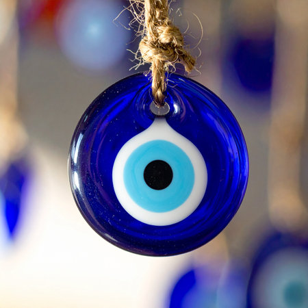 A closeup shot of an evil eye amulet with blurred background