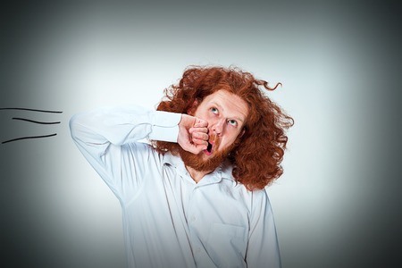 Man with a beard playing on a light background, illness, sick, sick, flu.