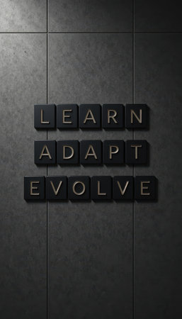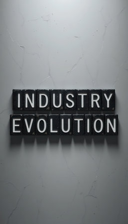 This image showcases the phrase Industry Evolution created with letter tiles against a sleek gray surface, representing progress and change in modern business.