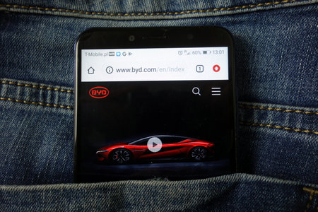 KONSKIE, POLAND - December 21, 2019: Byd Auto website www.byd.com displayed on mobile phone