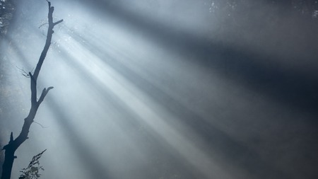 Morning freshness in a beautiful autumn face, a ray of sunshine passes through the branches of redays at dawn.