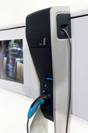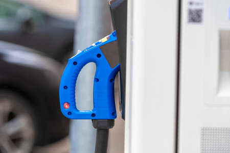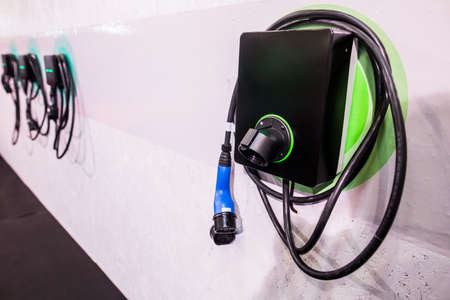 power supply plug of electric car charging station for energy vehicle EV. eco friendly