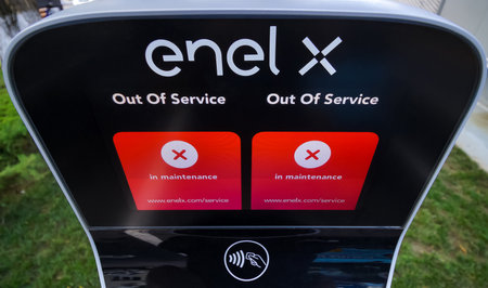 Electric car charging on parking lot in Cluj Napoca, Romania