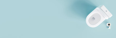 Toilet, WC on blue background with copy space. Hygiene, defecation, problems with digestion, constipation, diarrhea concept. Empty space for text, advertising. 3D rendering.
