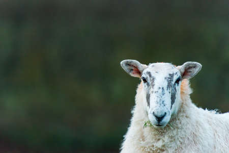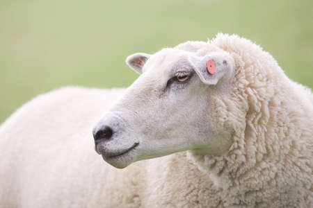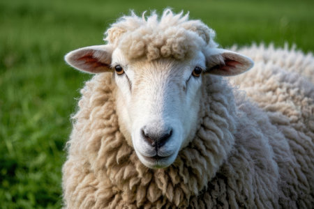 sheep closeup with clean blurred green background