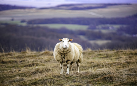 Sheep standing on a grassy hillside in Scotland, UK