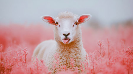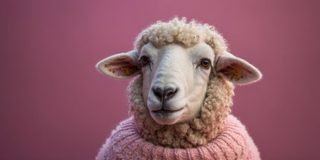 AI Generated. a sheep wearing a pink sweater and pink shades on a pink background