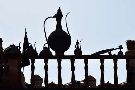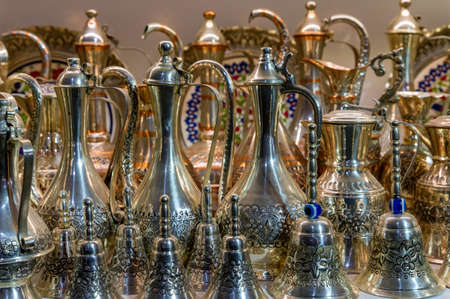 Close up of oriental coffee pot on turkish market