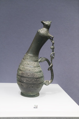 antique traditional Uzbek brass jug on exhibition at Museum of Antiques in Tashkent in Uzbekistan