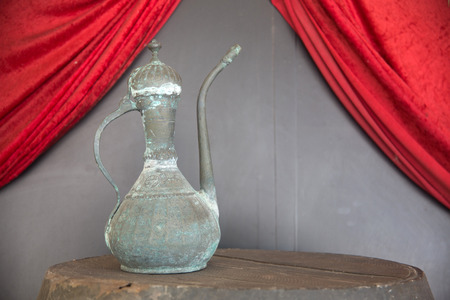 Ancient metal jug in oriental style in antique market