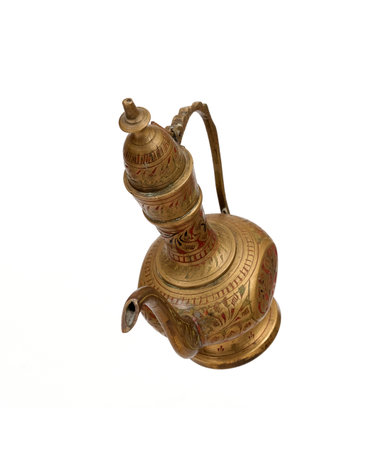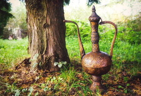 Eastern background of decorative still life with bronze jug and dish