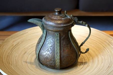 Old copper teapot for Turkish traditional tea drinking