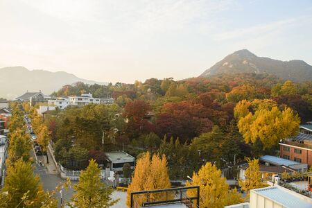 Autumn in South Korea colorful of Ginkgo Tree and Maple Tree at Seoul forest park ,South Korea.