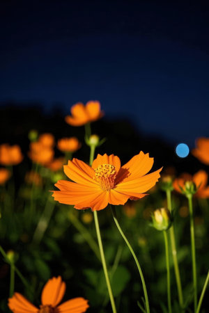 beautiful cosmos flower in the garden at twilight time, Thailand.