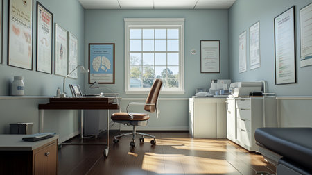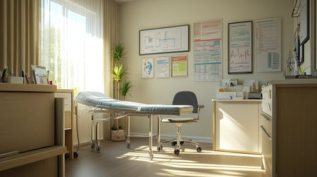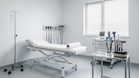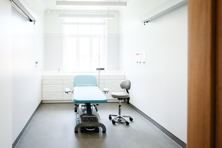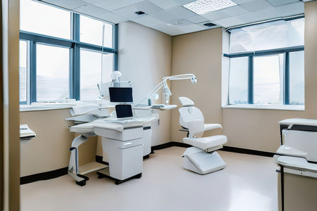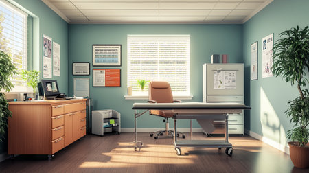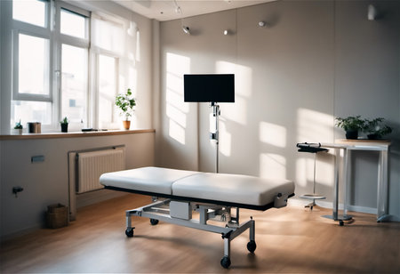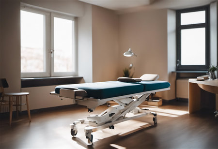 AI Generative illustration digital art of empty treatment room in medical clinic