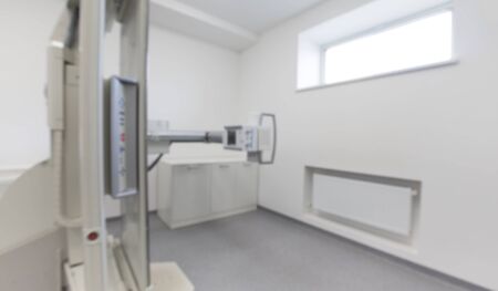 Interior of modern medical clinique with latest X-ray equipment, panorama, copy space, blurred motion