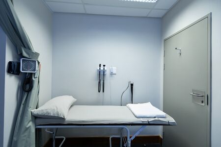 Treatment room, operating room with empty table in the hospital, soft blurred background. high quality photo