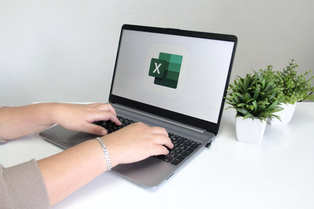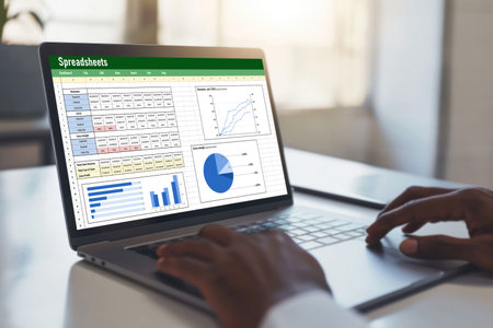 Electronic Spreadsheet Analyst Or Auditor Using Software On Hybrid Laptop