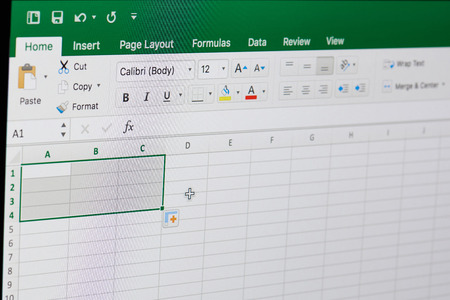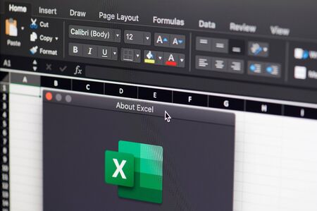 New york, USA - April 12, 2018: Microsoft office excel application menu on computer screen close up